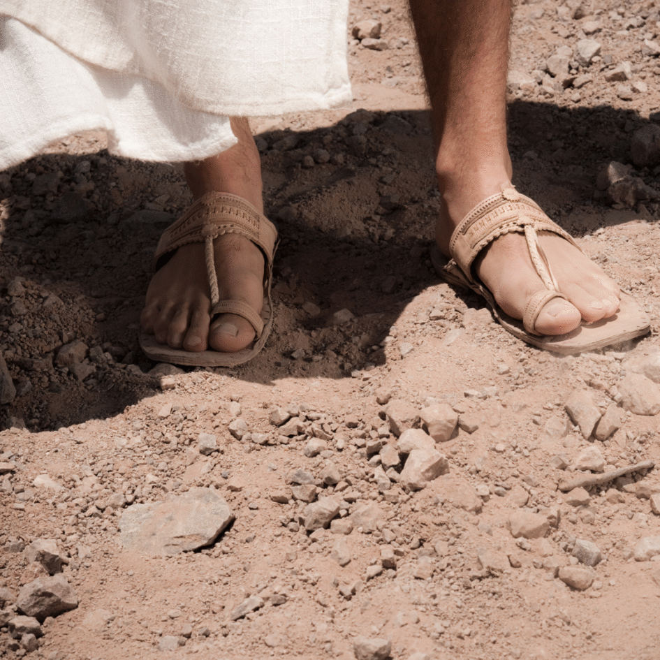 Maar er is daar geen fel licht op die berg. Er staat geen troon. Er is geen machtig leger. Alleen Jezus is daar. Ze zagen niemand dan Jezus alleen. In zijn handen zie je de wonden van het kruis. Want zijn macht is anders dan de macht van de wereld.
